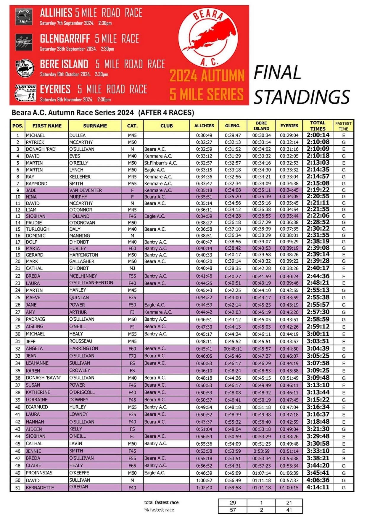 This challenging event is the centrepiece of the Beara A.C. Autumn 5 mile Series and is organised by Eyeries Running Promotions and Beara A.C.