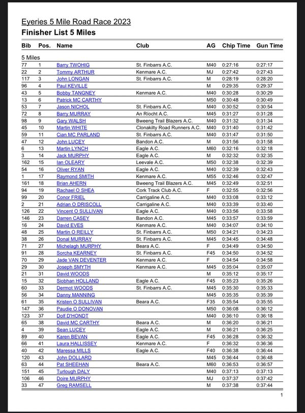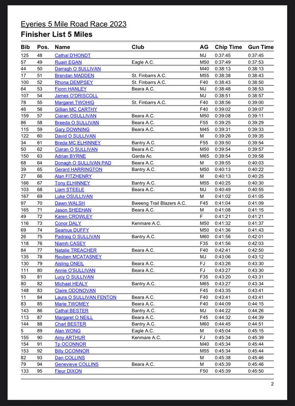 Beara Athletic Club 2023