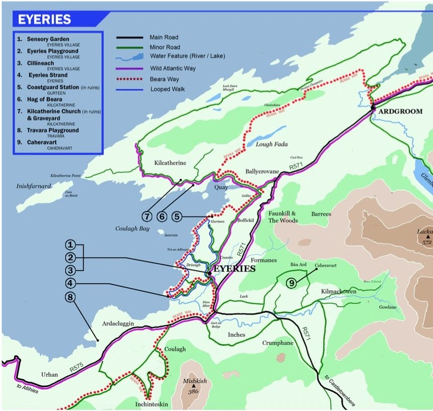 Map shown by courtesy of Beara Tourism.