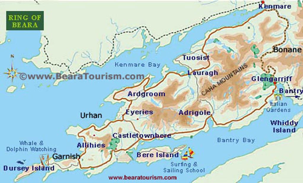 Eyeries is situated on The Beara Way which is a 206km National Waymarked walking trail that starts and ends in Glengarriff. Along this trail you can see the magnificent, rugged coastline and mountains of the Beara Peninsular and many archaeological sites.